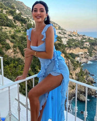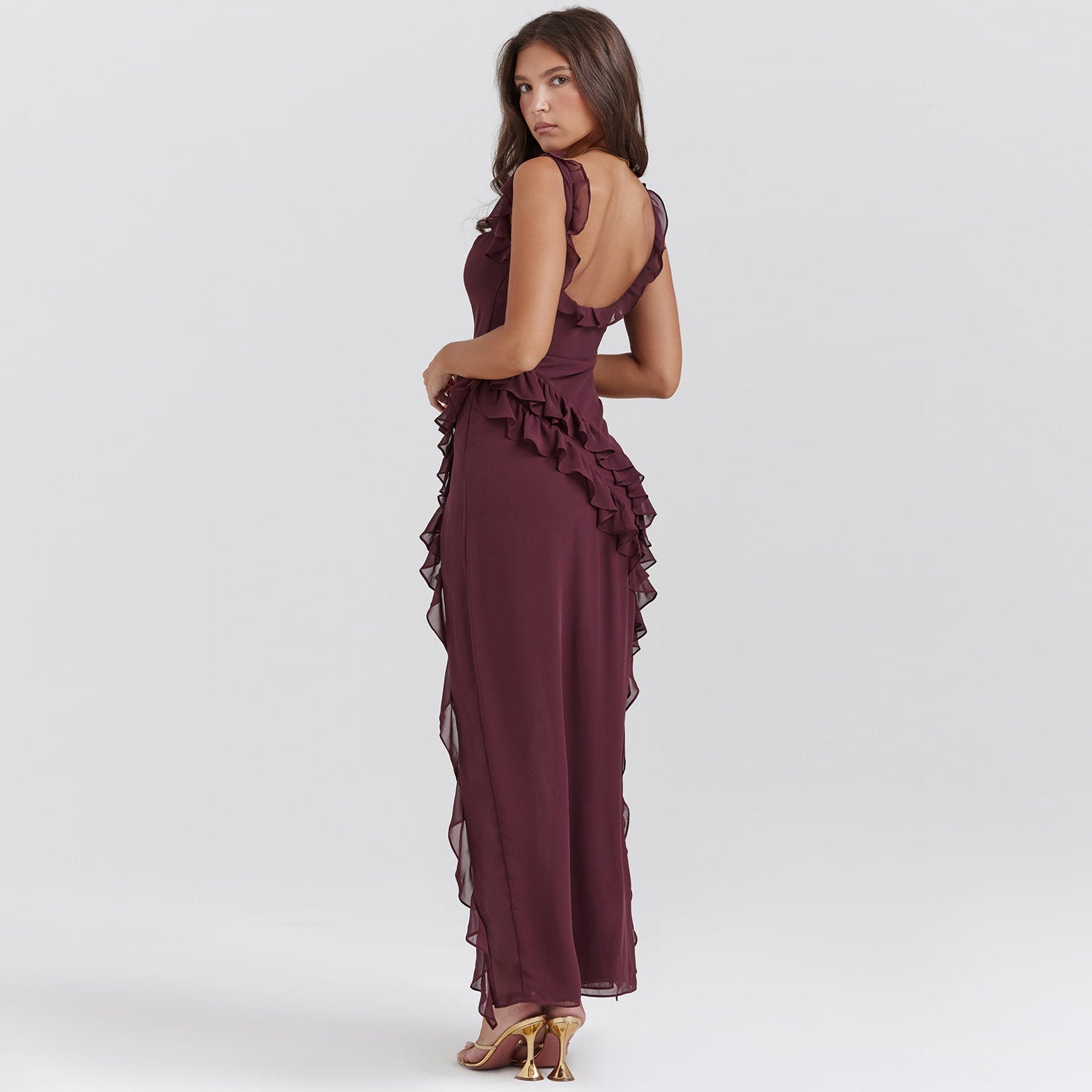 This dress is your go-to piece for any glamorous occasion. Whether you're attending a wedding, stepping out for a romantic date, or making an entrance at a chic dinner party, this backless ruffle dress promises to make you the center of attention.